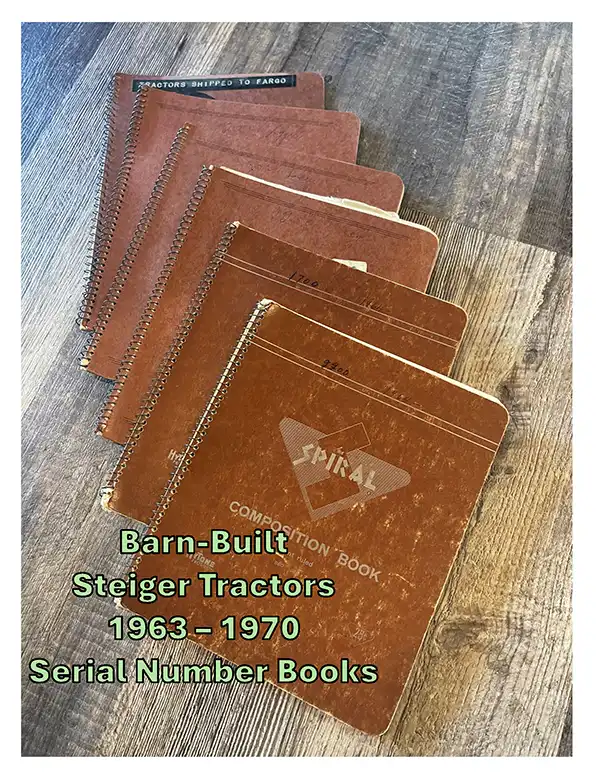 Contains scanned images of all pages from the Serial number books for tractors built in the Barn Rural Red Lakes Falls, MN during 1963-1970